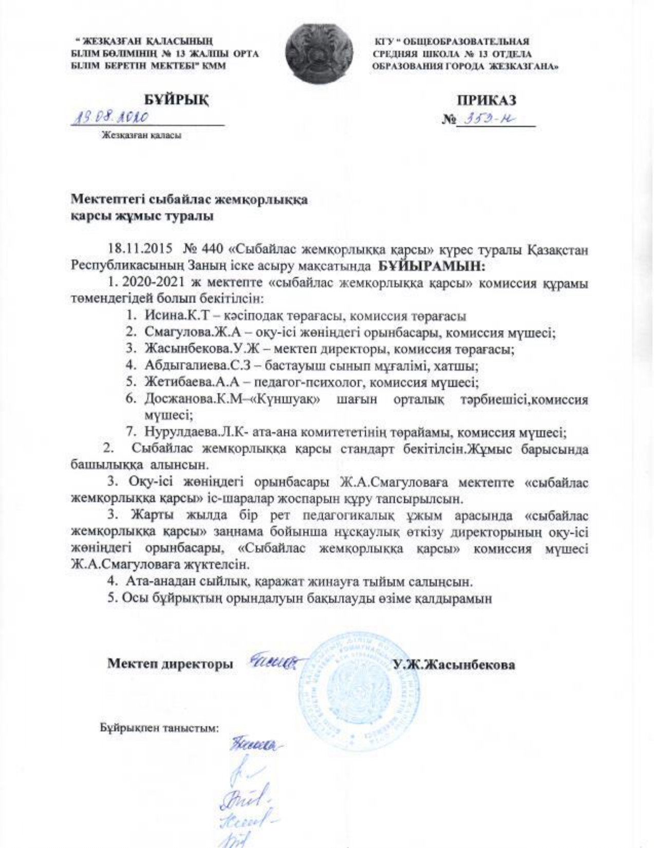 Мектептегі сыбайлас жемқорлыққа қарсы жұмыс туралы