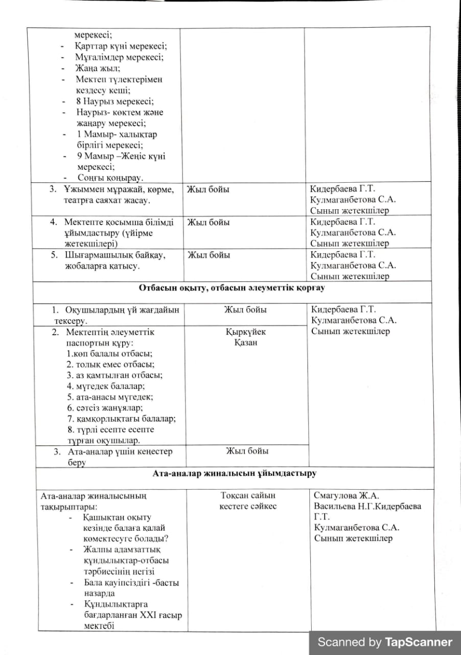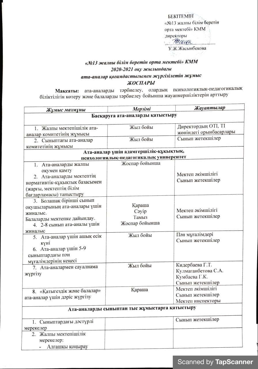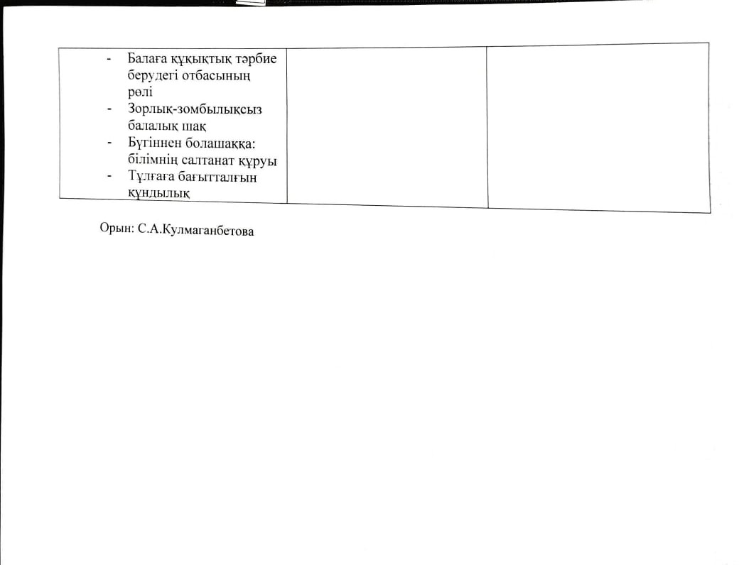 Ата-аналар қоғамдастығымен жүргізілетін жұмыс жоспары