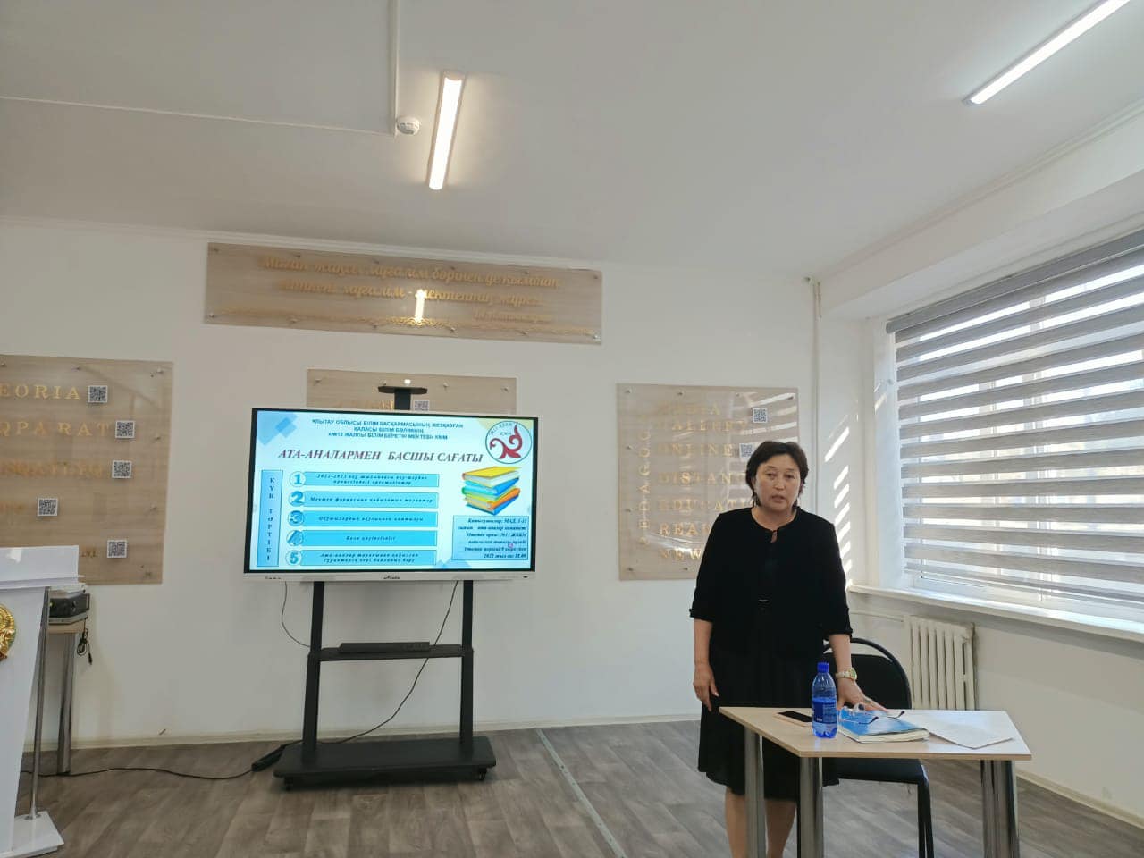 Мектеп басшысы Г. Х. Оразова 2022-2023 оқу жылындағы оқу-тәрбие процесіндегі ерекшеліктеріне тоқталды, мектеп формасына қойылатын талаптар, оқушылардың оқулықпен қамтылуы бойынша мәлімдеді. Бала қауіпсіздігі, баланың білім мен тәрбие алуында мектеп, ата - ана өзара бірлесіп, жұмыла жұмыс жасау қажеттілігін ерекше атап өтті.