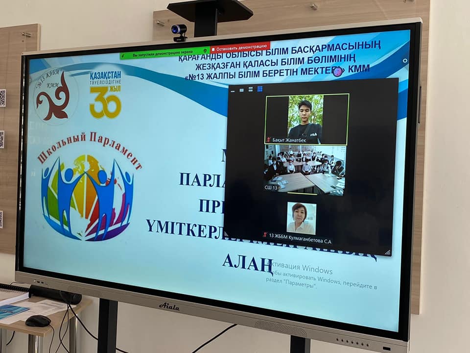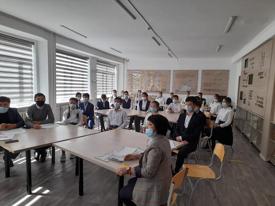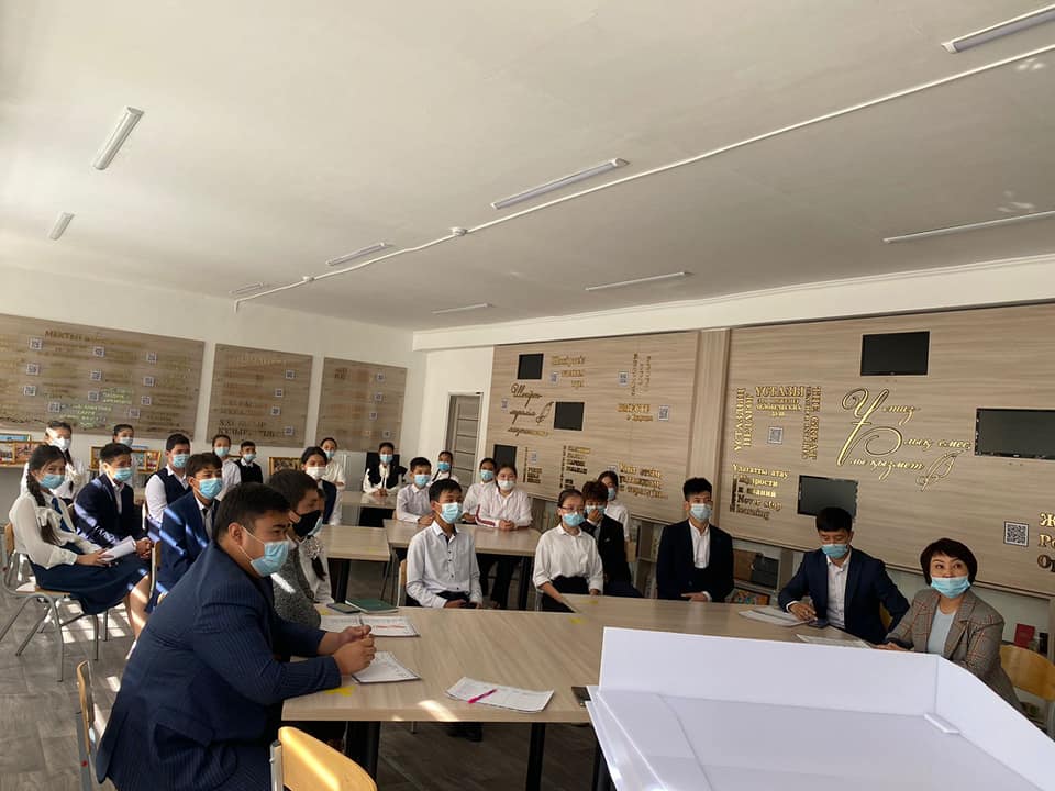 Мектеп Парламентінің Президентіне үміткерлермен 2019-2020, 2020-2021 оқу жылдарындағы мектеп Президенті Жанатбек Бақыт онлайн кездесу өткізіп сұхбаттасты. Сұхбат барысында үміткерлер сайлауалды бағдарламаларын, болашаққа жоспарларын ұсынды, түрлі жагдайаттық сұрақтарға жауап берді. Үміткерлердің белсенділік, жауапкершілік, көшбасшылық мінез-құлық дағдылары, сөйлеу мәдениеті, көпшілік алдында өзін-өзі ұстау, командада жұмыс жасау шеберліктеріне тәуелсіз сарапшылар баға берді.