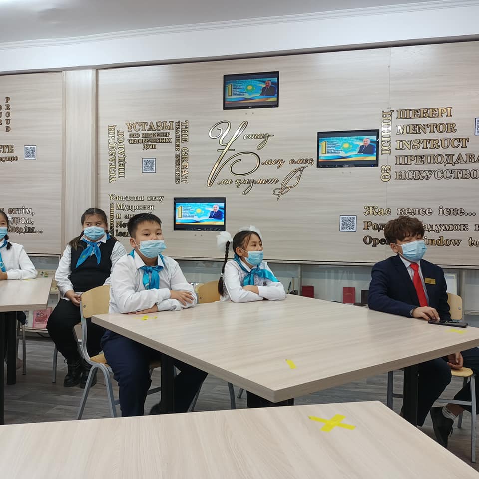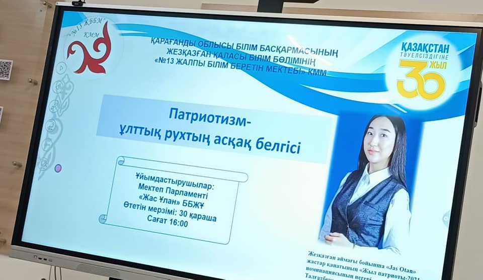 Қазақстан Республикасы Тәуелсіздігінің 30 жылдығы, Тұңғыш Президент күні қарсаңында мектеп Парламентінің "Қамқорлық" және "Патриотизм" фракцияларының тьюторлары М. Мақыбас, Қ. Мустафаның жетекшілігімен мектеп Парламенті, "Жас Ұлан" ББЖҰ Жезқазған қаласы “Jas Otan” жастар қанатының төрайымы, “Жыл патриоты-2021” номинациясының иегері Талғатбекова Нұргүл Ахатқызымен "Патриотизм- ұлттық рухтың асқак белгісі" тақырыбында кездесу ұйымдастырды. Кездесуге қатысушылар «Патриотизм. Ол нені білдіреді?», "Нағыз патриот кандай болуы керек?" деген сауалдардың төңірегінде ой бөлісіп, пікір алмасып, әңгіме өрбітті.