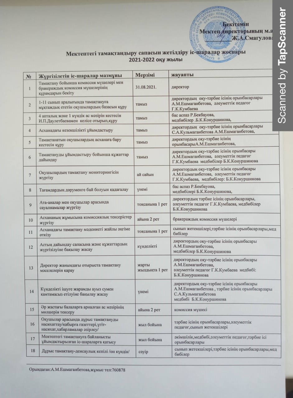 Тамақтану сапасын жетілдіу іс-шаралар жоспары