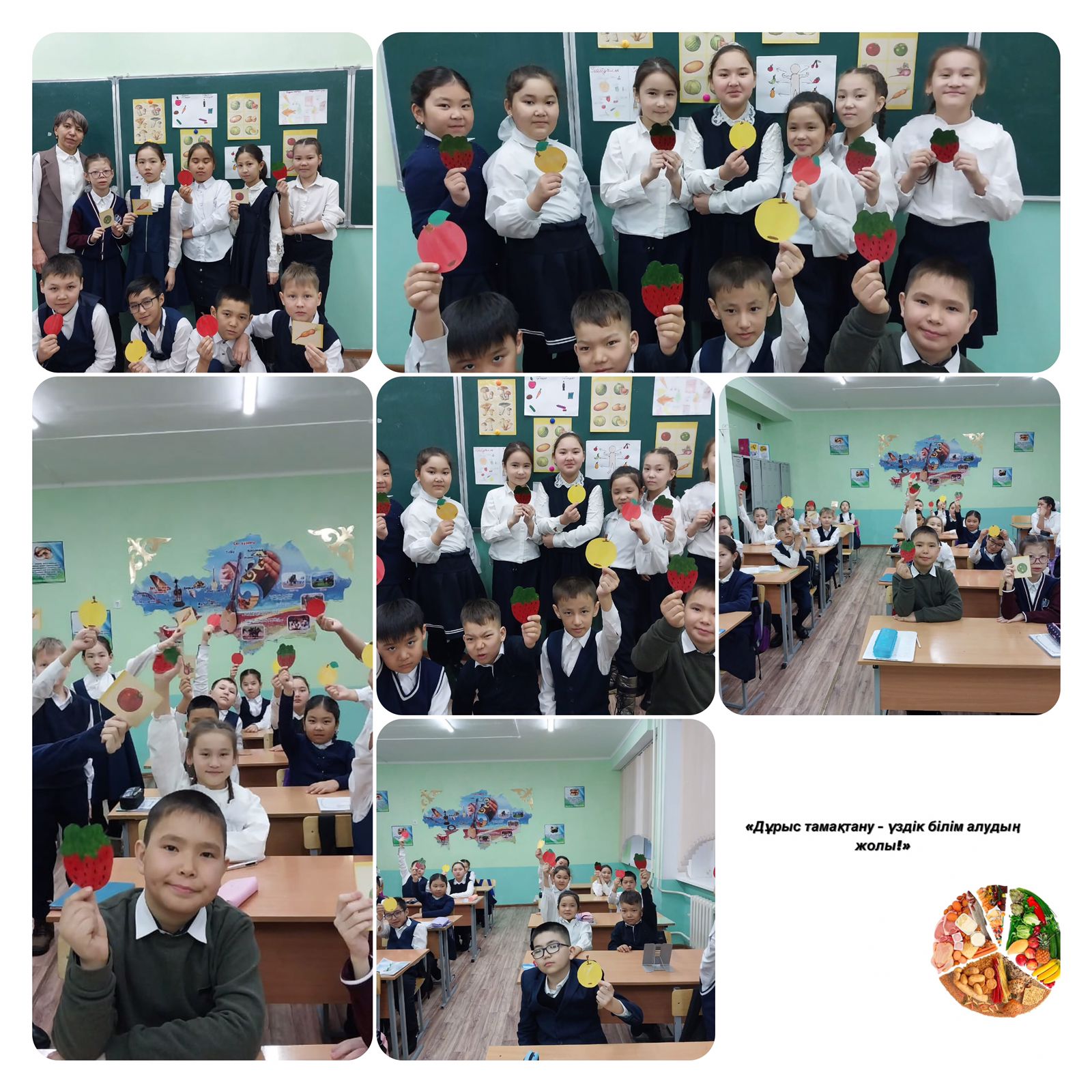 «Дұрыс тамақтану – үздік білім алудың жолы!» тақырыбында өтіп жатьқан апталықтан көріністер