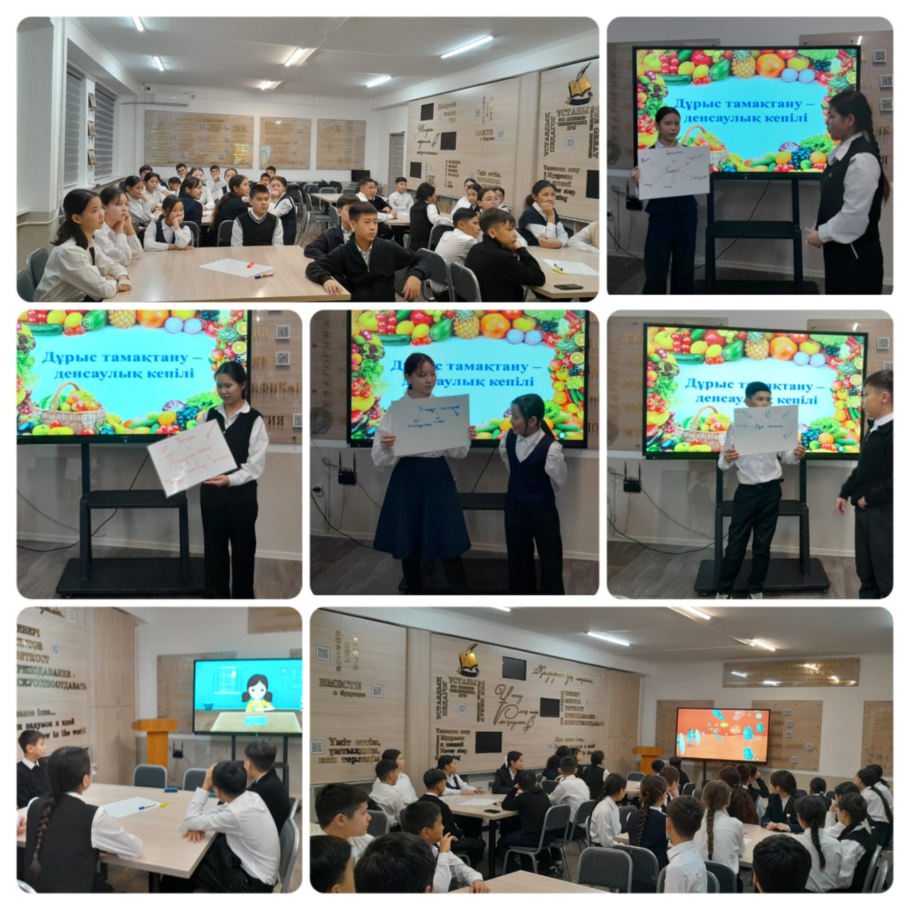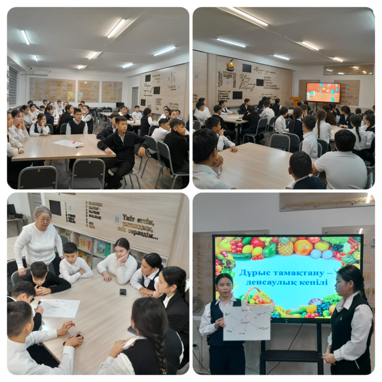 8 "Д" мен 8 "З" сынып оқушыларының қатысуымен "Дұрыс тамақтану - денсаулық кепілі" тақырыбында сынып сағаты өтті.