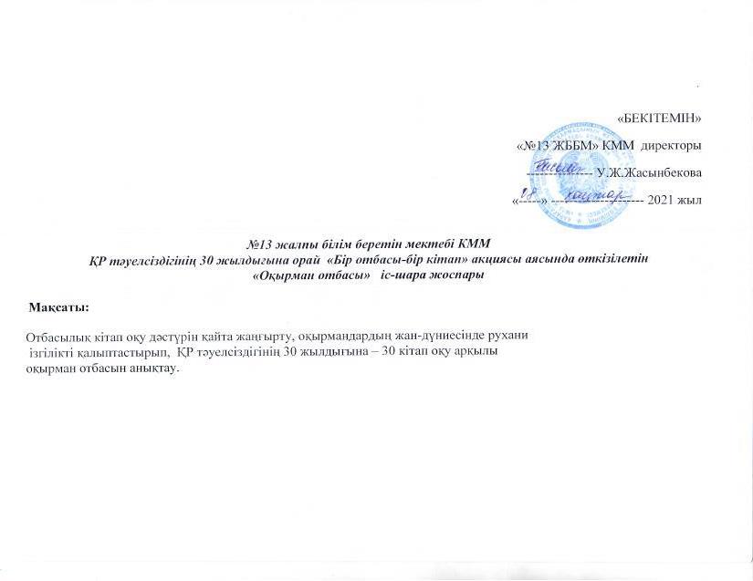 ҚР тәуелсіздігінің 30 жылдығына – 30 кітап(кітап көрмесі файе 1 қабат және( Вертуалды көрме) |