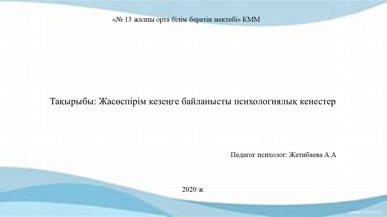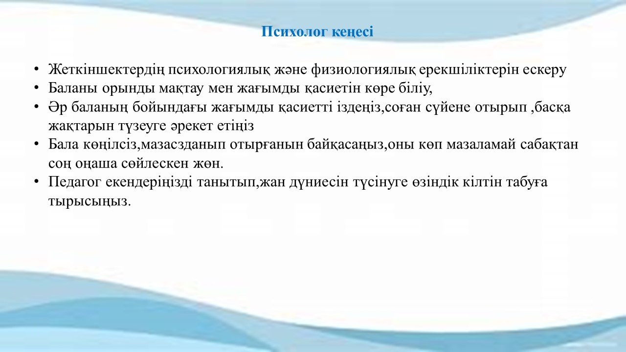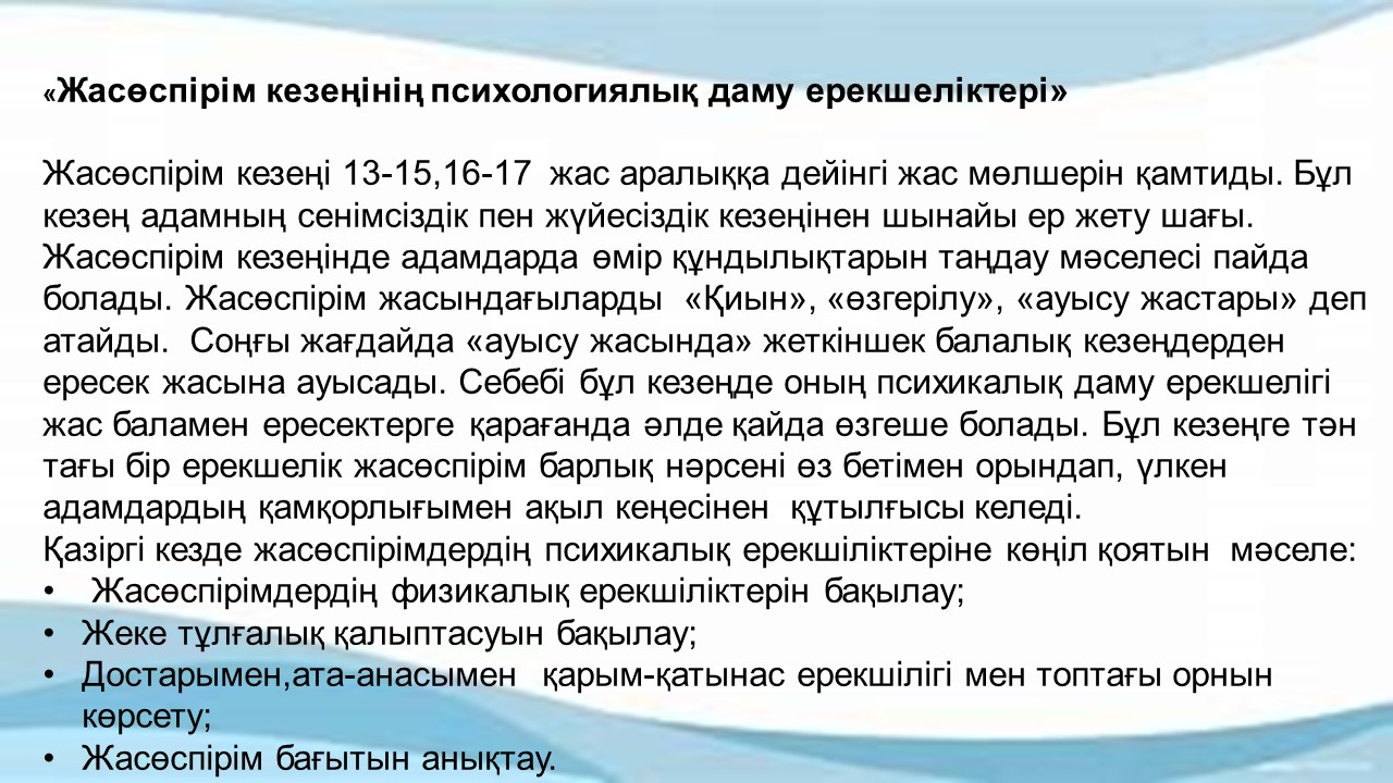 Жасөспірім кезеңге байланысты психологиялық кенестер