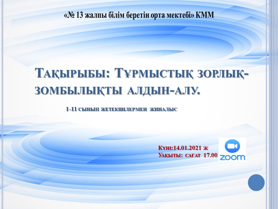Тұрмыстық зорлық-зомбылықты алдын алу.