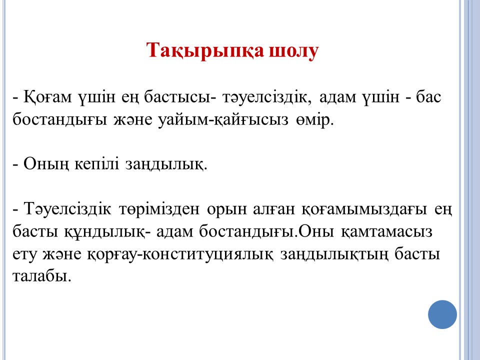 Жаңа қазақстандық патриотизм мен азаматтық тәрбиелеу, құқықтық трәбиелеу