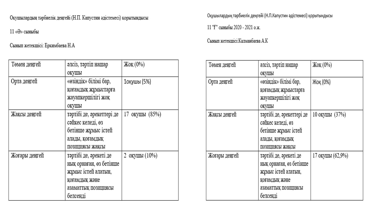 Тәрбие құндылығы: тәжірибе және нәтиже
