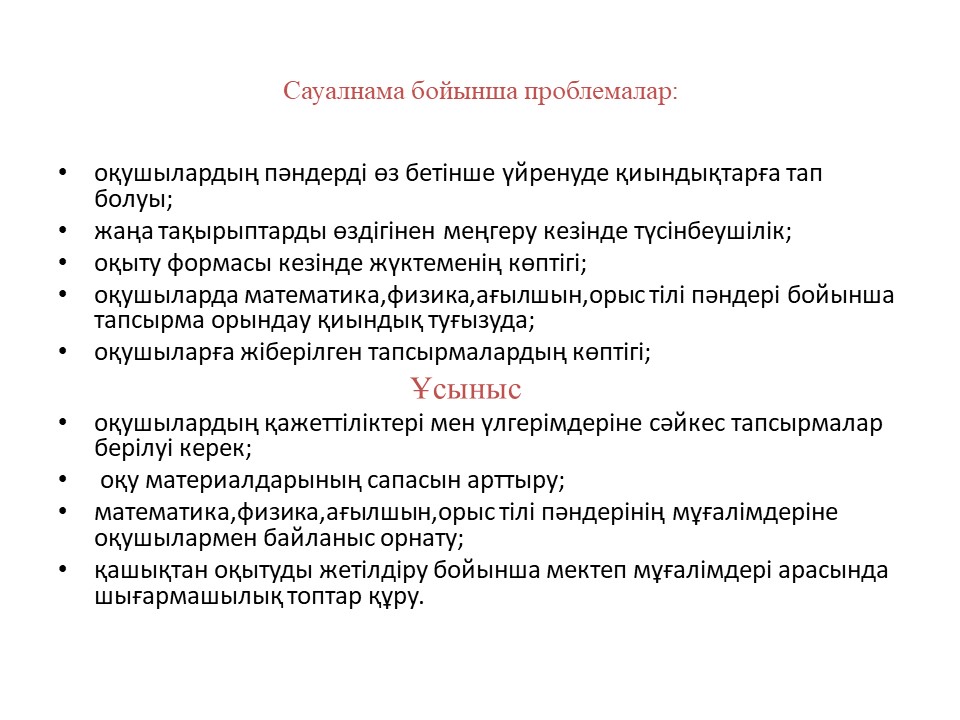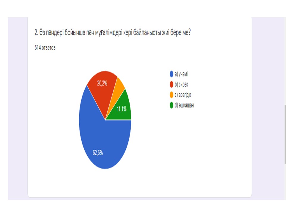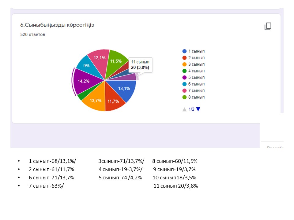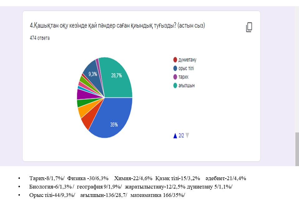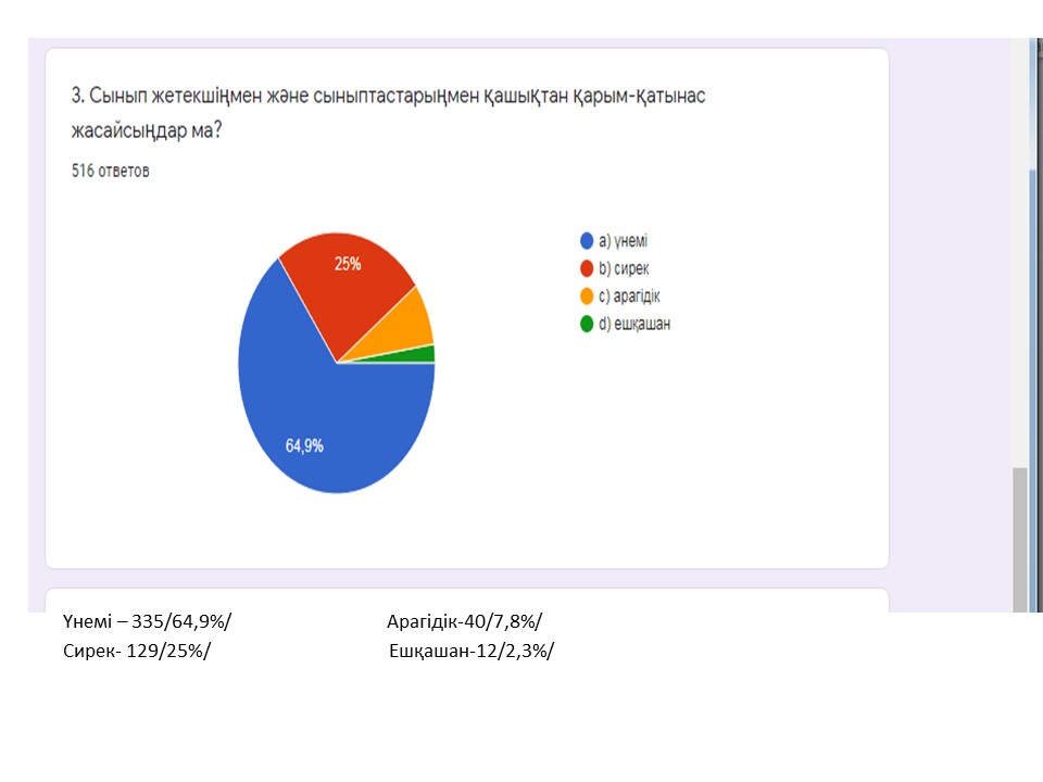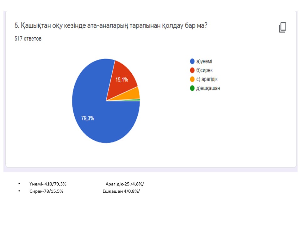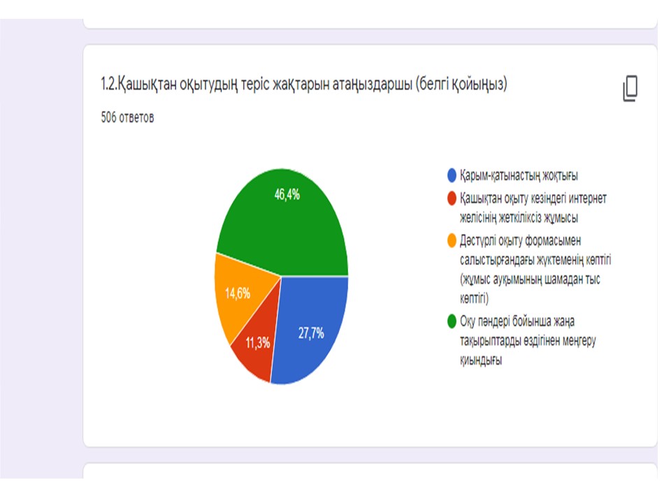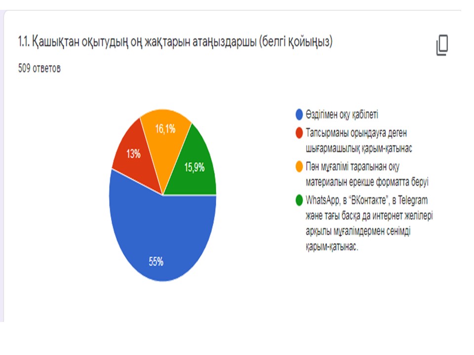 Қашықтан оқыту сұрақтары бойынша оқушыларға арналған сауалнама қорытындысы