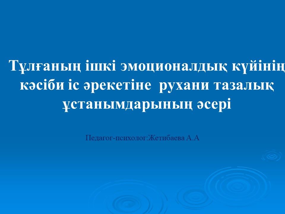 «Тұлғаның ішкі эмоционалдық күйінің кәсіби іс әрекетіне рухани тазалық ұстанымдарының әсері»