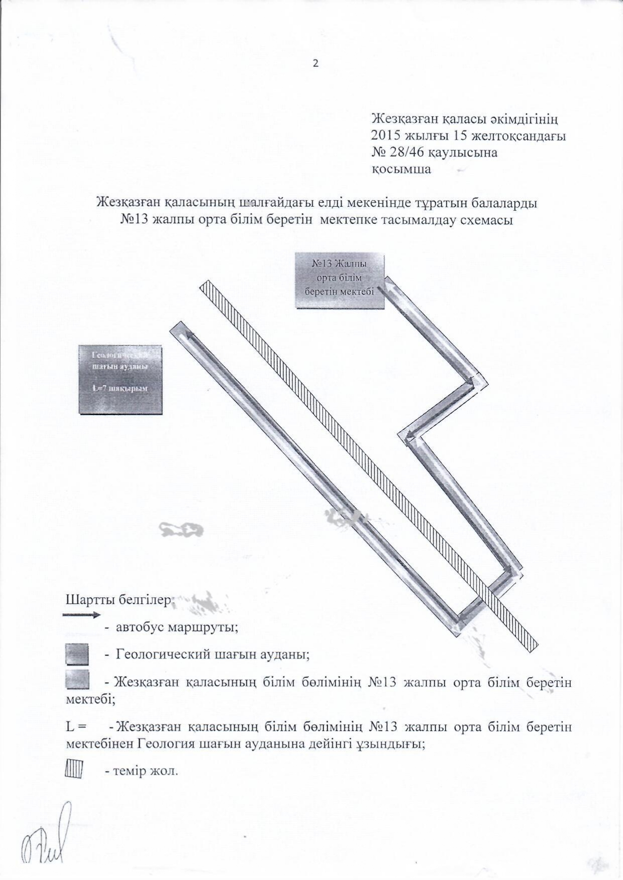 Жезқазған қаласының шалғайдағы елді мекенінде тұратын балаларды мектепке тасымалдау схемасы