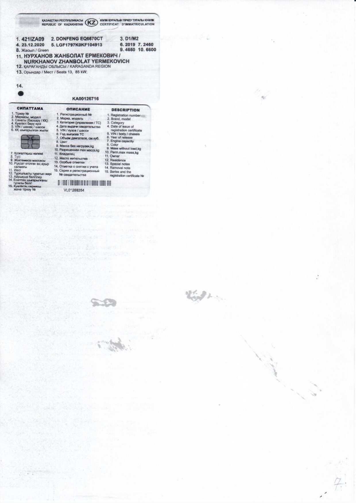 Көлік құралын тіркеу туралы куәлік