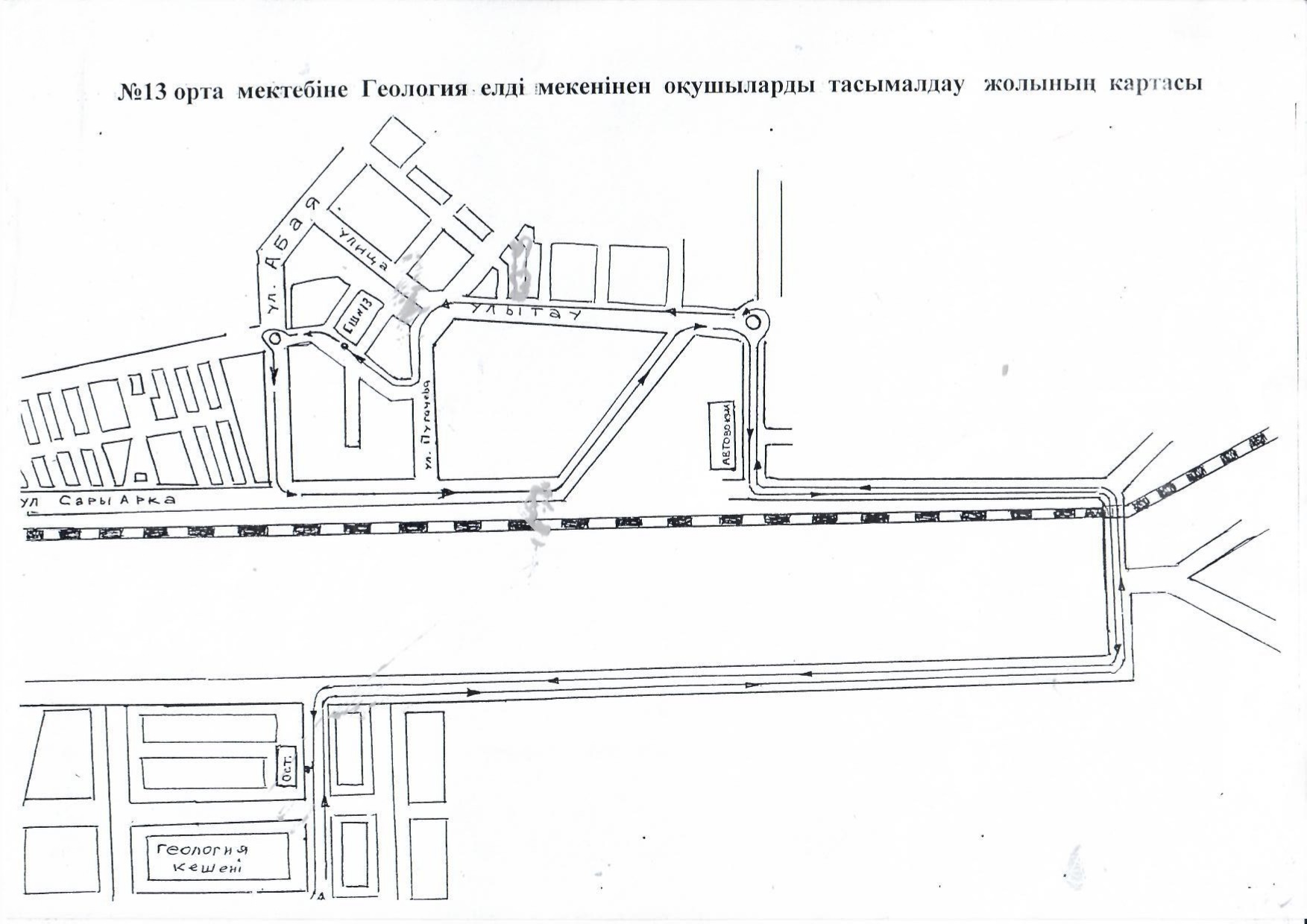 Геология елді мекенінен оқушыларды тасымалдау картасы