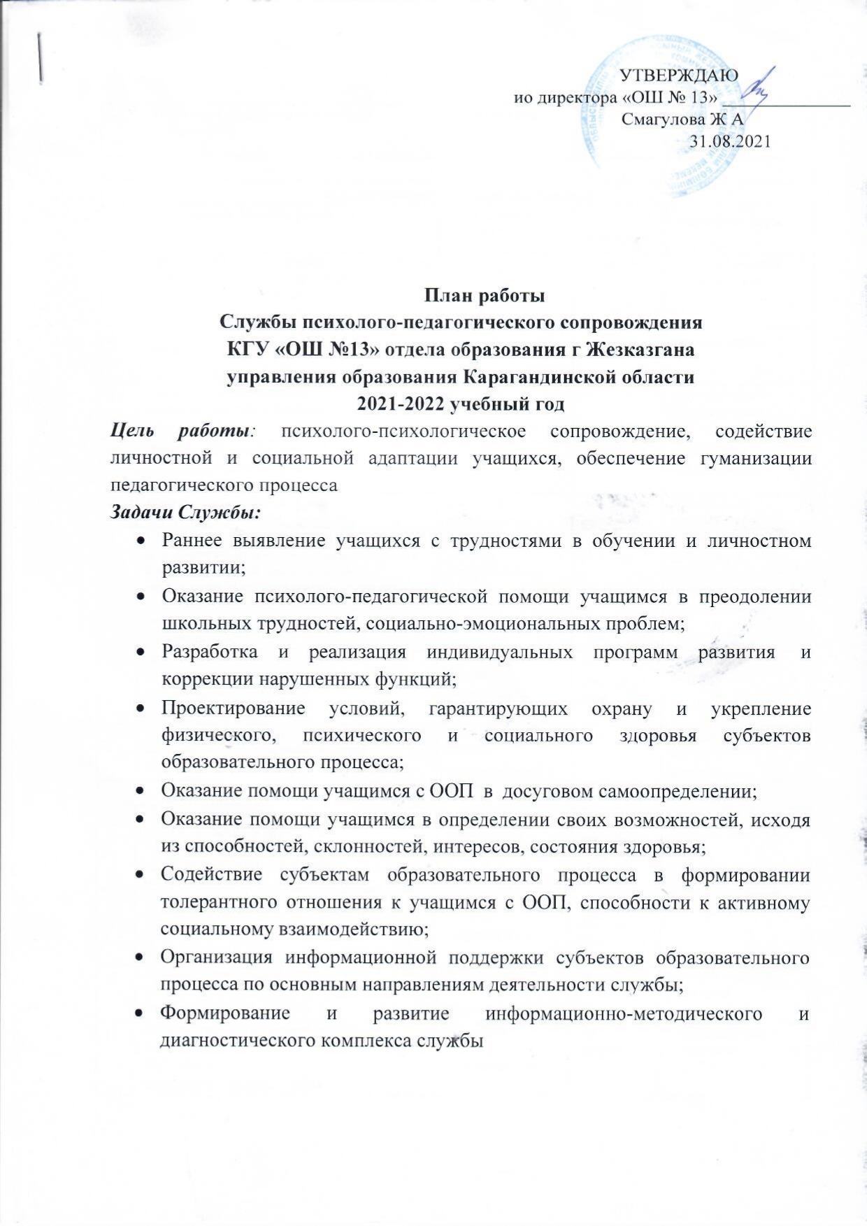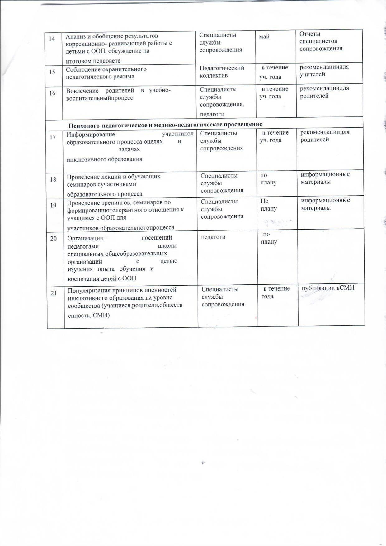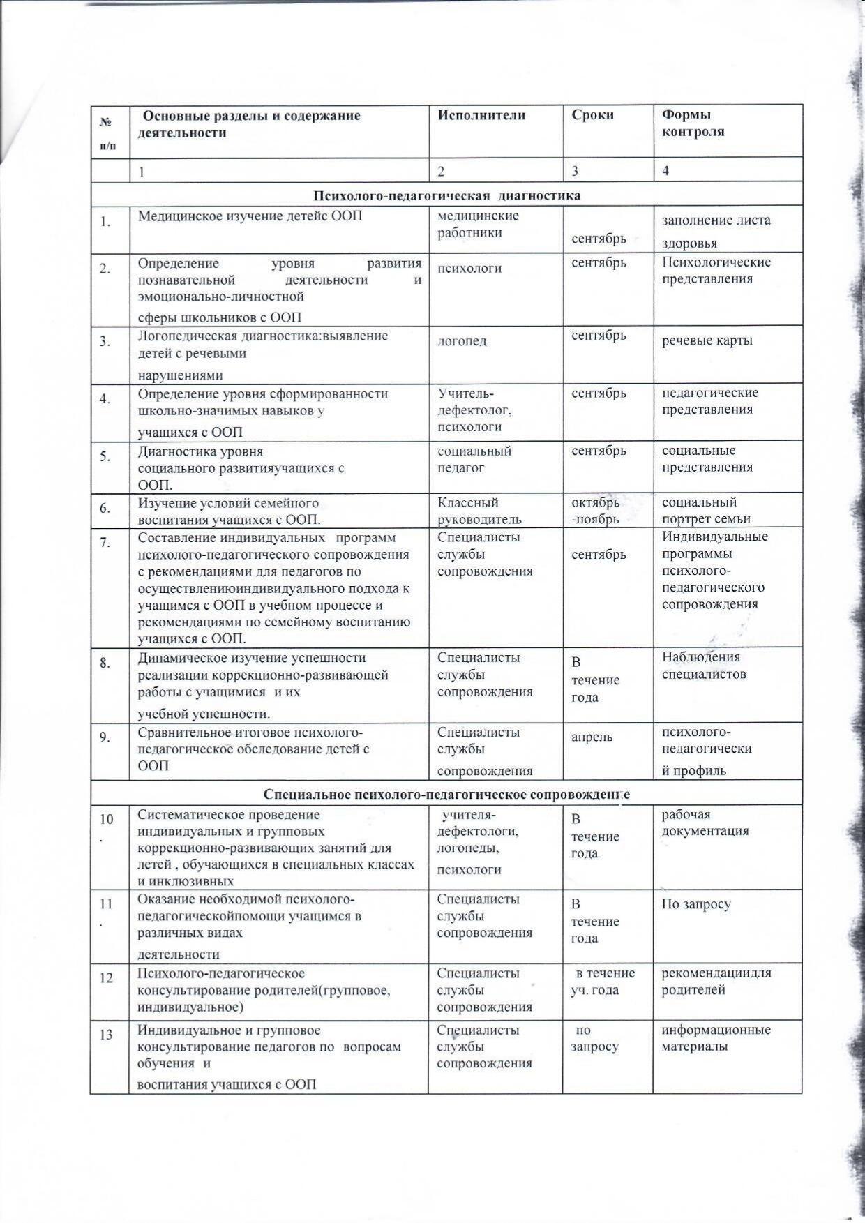 План службы псих -пед сопровождения