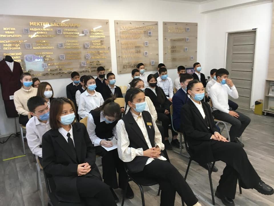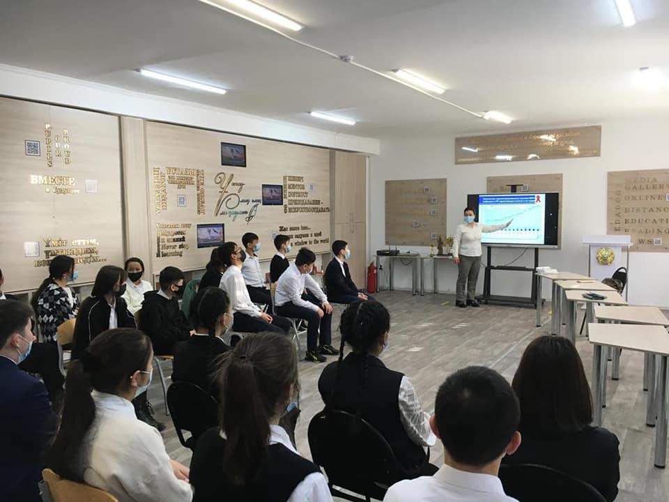 ЖИТС-ке қарсы күресу іс шаралары аясында Жезқазған қаласының СПИД орталығының маманы Беспаева Гулнур Есмуратовнамен кездесу ұйымдастырылды. Гулнур Есмуратовна ЖИТС тің адам өміріне әкелетін зиянын ашып түсіндіре отырып, олардың сана сезімдеріне дұрыс өмір сүру дағдыларын дамытуға және салауатты өмір сүруге,өз өмірлеріне үлкен жауапкершілік пен қарауға шақырды."ЖИТС - XXI ғасыр індеті" тақырыбында видеоролик көрсетіп ,жалпы Қарағанды облысы оның ішінде Жезқазған,Сәтбаев аймақтары бойынша статистикалық мәліметтермен таныстырды.ВИЧ инфекция сының таралу жолдарын түсіндіріп, сақтық шараларын ұстанып жүргеннің абзал екенін айтты.Іс шараның соңында Гулнур Есмуратовна оқушыларға жаднамасы бар қойын дәптер таратып, естелікке суретке түсті.