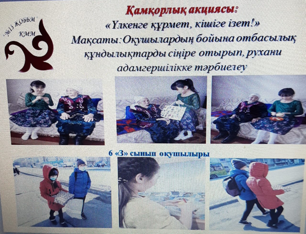 18 наурыз-“Игі істер күні”. Жас ұрпақтың бойына рухани-адамгершілік қасиеттерін ұялату үшін мейірімді, ақылды, шыншыл, қайырымды қасиеттерді игеруге ықпал етуге, достыққа, қайырымдылыққа тәрбиелеп, рухани-адамгершілік тәрбие беру мақсатында 6 сыныптарда «Игі істер күні» атап өтілді