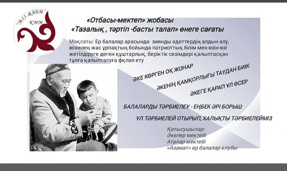 Әр халықтың бала тәрбиесіндегі өзіндік ерекшеліктері арқылы мәдени құндылықтары қалыптасады. Ата-бабамыз ұл баланы ертеңгі абыройлы әке, қадірлі отағасы, елді қорғайтын ер, батыр, би, ақын, ұлттың намысты азаматы ретінде әділдікке, қайсарлыққа, кешірімді болуына, өнерге, білімге, салт-дәстүрімізді сақтауға тәрбиелеген. Ер бала – қазақта шаңырақ иесі, ер-азамат – ата-ананың отын тұтатушы болып саналады. Қазақ отбасының ерекшелігі жасы кішісінің үлкеніне «сен» деп сөйлемеуі, алдын кесіп өтпеуі, үлкен тұрып кішінің, әке тұрып ұлдың, шеше тұрып қыздың орынсыз сөйлемеуінде. Қазақ отбасындағы үлкенді құрметтеу әдеті жауапкершілік, адамгершілік сезімдерін туғызған. Дұрыс бағытқа бағдарлау көп жағдайда абыройлы әкеге, үлгілі отағасына, қадірлі ағаларына байланысты. Халқымыз ел бала тәрбиесіне ерекше көңіл бөлген. Қай халықта болмасын, ұл бала тәрбиесі – әке меншігінде. Мектебіміздің ер балаларымен өткізілген өнеге сағатына «Отбасы –мектеп» жобасы аясында құрылған Әкелер мектебінің өкілдері қатысып, тәлімі мол әңгіме өрбітті