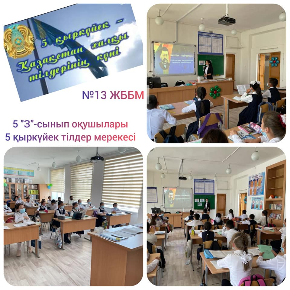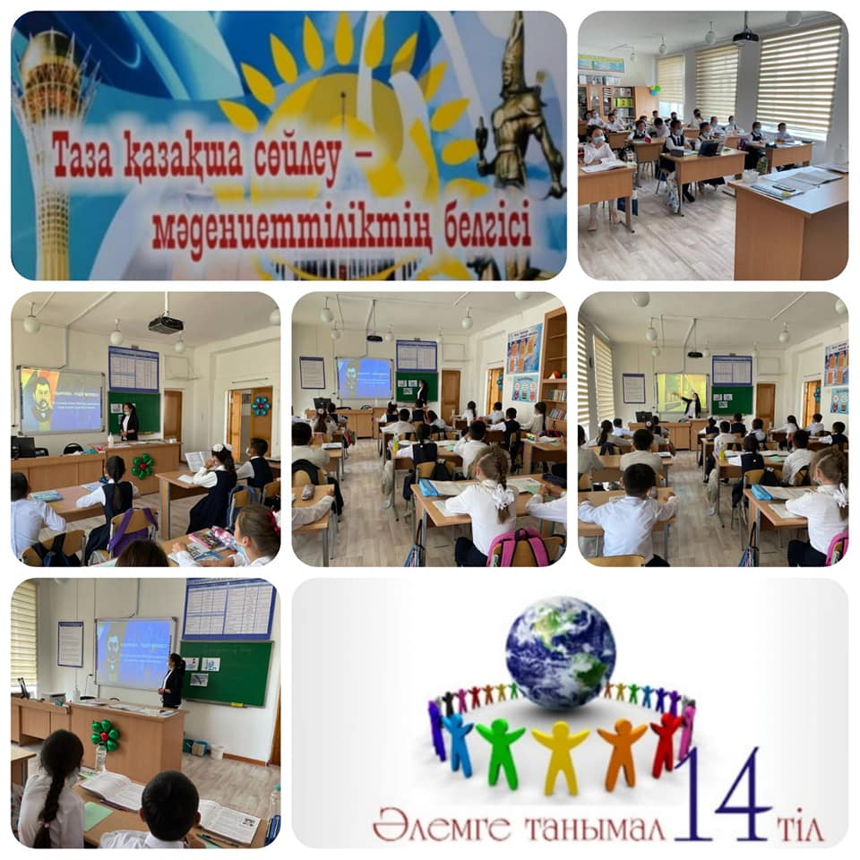 Қазақстан халықтарының тілдер күніне орай "Тіл- асыл қазына", «Тілім менің-тірлігімнің айғағы», «Тіл -ұлт байлығы» тақырыптарында іс- шаралар өтті. Оқушылар сөйлеу тілдерін дамыта отырып көркем, шешен сөйлеуге үйрету басты мақсат болып табылды. Ана тілін қастерлеу, құрметтеу арқылы тіл мәртебесін көтеру екенін түсінді. Тіл -ұлттың жаны, халықтың асыл белгісі, намысы, тыныс- тіршілігінің көзі,Ата Заңымен қорғалатын, еркіндігінің үні. Оны құрметтеп, қорғау келешек ұрпаққа жеткізу өздеріне міндеттелген үлкен жүк екенін түсінді.