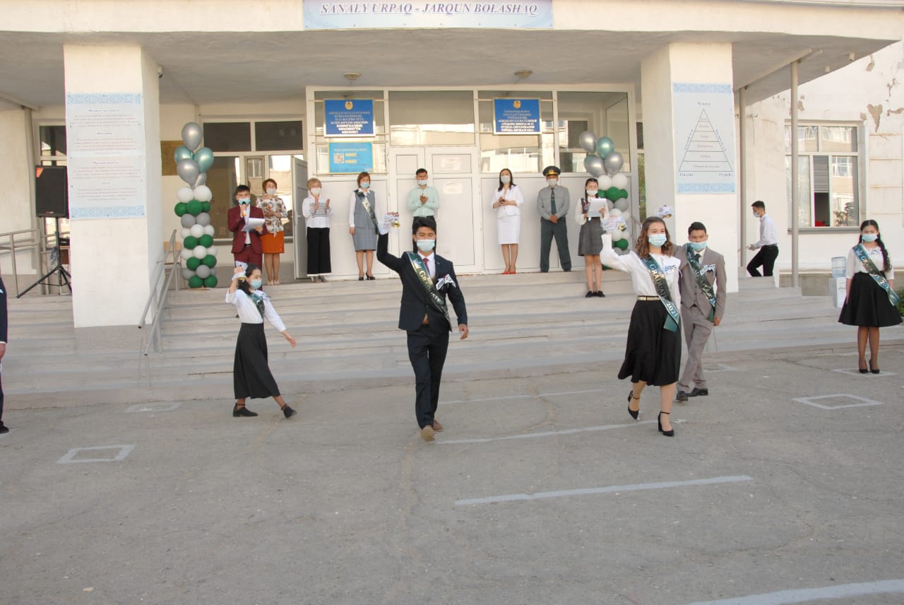 Бүгін еліміздің түкпір-түкпіріндегі мыңдаған мектептің жас түлектері алтын ұясымен қоштасып, үлкен өмірге қадам басқан күн. Көңілдерде қимастық сезімі ұялап, тарыдай болып аттаған табалдырықтан көкке қанат жайған соңғы қоңырау үні 60 жылдық тарихы бар мектебімізде де сыңғырлап, 54 түлек қимастықпен қанат қақты. Қазақ Елін жарқын істермен жалғайтын жас түлектерге мектеп директоры У. Ж. Жасынбекова Жезқазған каласының әкімі Қ.Б.Абсаттаров жолдаған құттықтауын жеткізіп, келешектерінің кемел, болашақтарының нұрлы болуына тілектестік білдірді. Қазақстан Республикасының Тәуелсіздігінің 30 жылдығы, қойнауында талай тарихты бүгіп жатқан алтын ұя мектебінің 60 жылдық мерейтойымен тұспа тұс келген соңғы қоңырау салтанатында мектеп түлектері білім бұлағынан сусындатып , саналы тәрбие беріп, өмірге бейім, бәсекеге қабілетті тұлға болып қалыптасуда еңбектерін аямаған аяулы ұстаздарына, алтын ұя мектебіне ыстық ықыластарын білдіріп, әннен шашу шашты, өздерінен кейінгі ізбасарларына алтын кілтті аманаттап, мектеппен қоштасар, болашақта күтіп тұрған өмірдің келесі белесіне апаратын соңғы қоңырауды соқты
