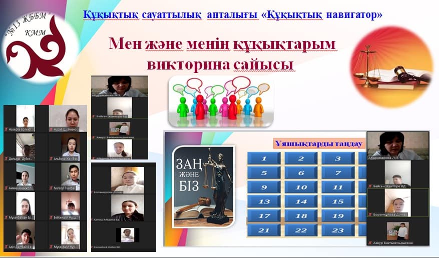 Мақсаты: Оқушылардың құқықтық сауаттылықтарын арттыру және кәмелетке толмағандардың арасындағы құқық бұзушылықтың алдын алу.