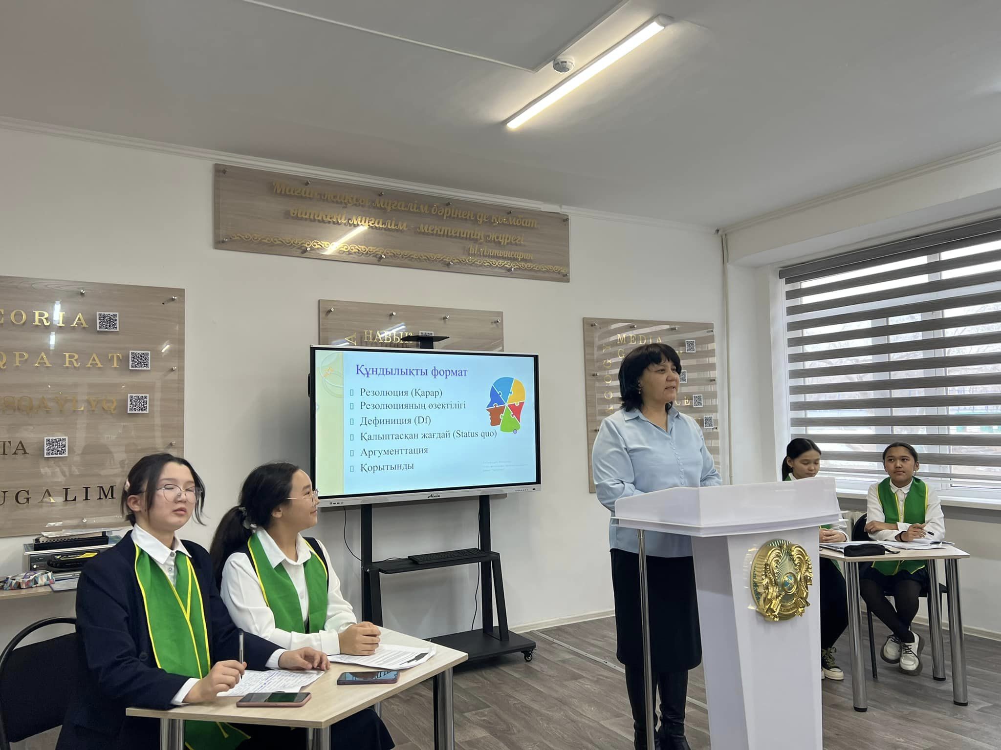 ДЕБАТ ҚОЗҒАЛЫСЫ клубының жетекшісі Лаззат Абдраманова 6-7 сынып оқушыларына «Дебат пікірсайыс турнирін АПФ форматында ойнау тәсілдерін үйрету» тақырыбында тренинг ұйымдастырды.